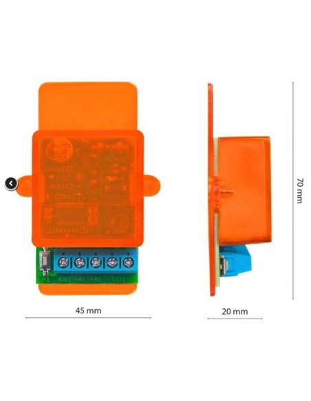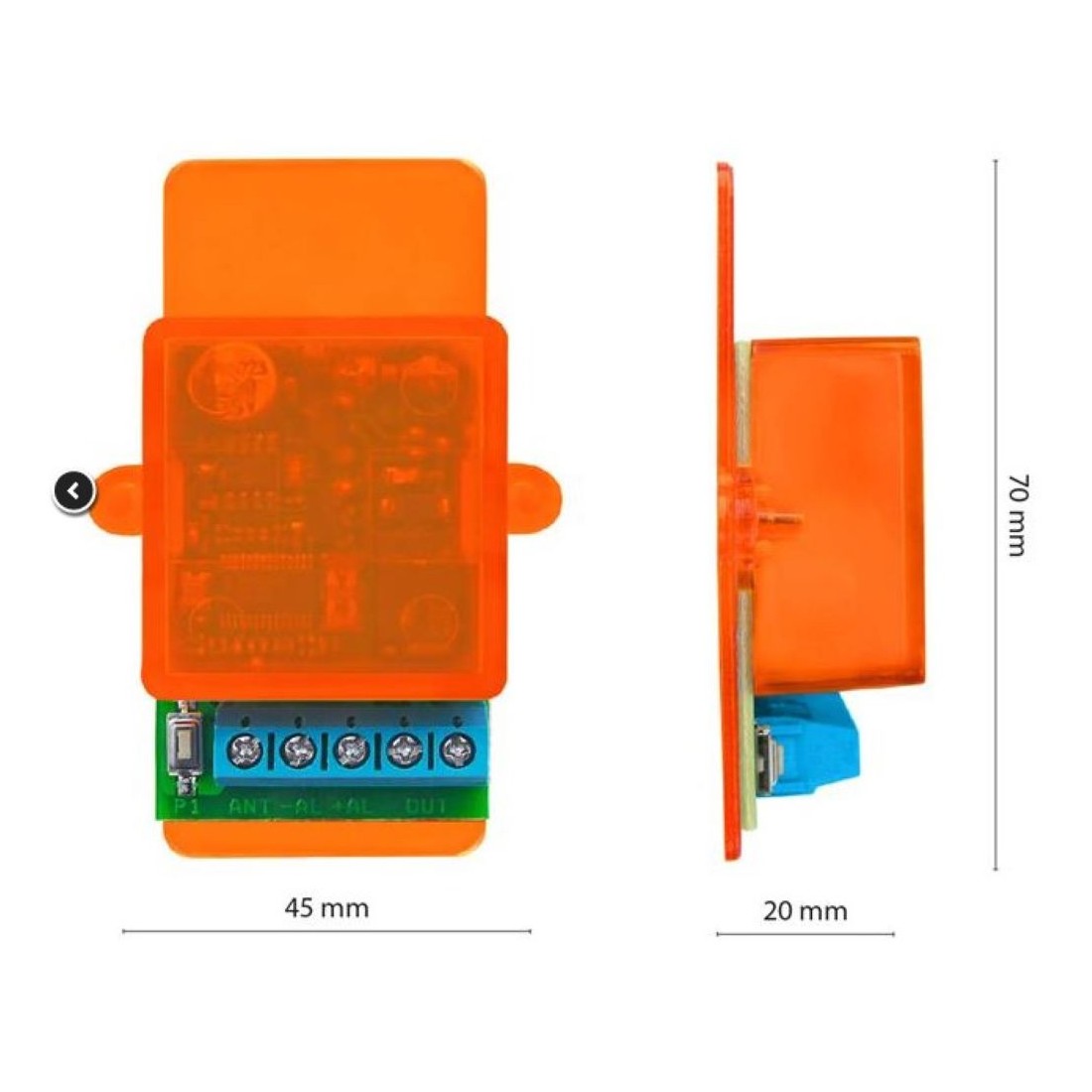Mini ricevitore monocanale in autoapprendimento per il comando a distanza. La radio 433MHz è incorporata. Gestisce codici standard da 12 a 64 bit