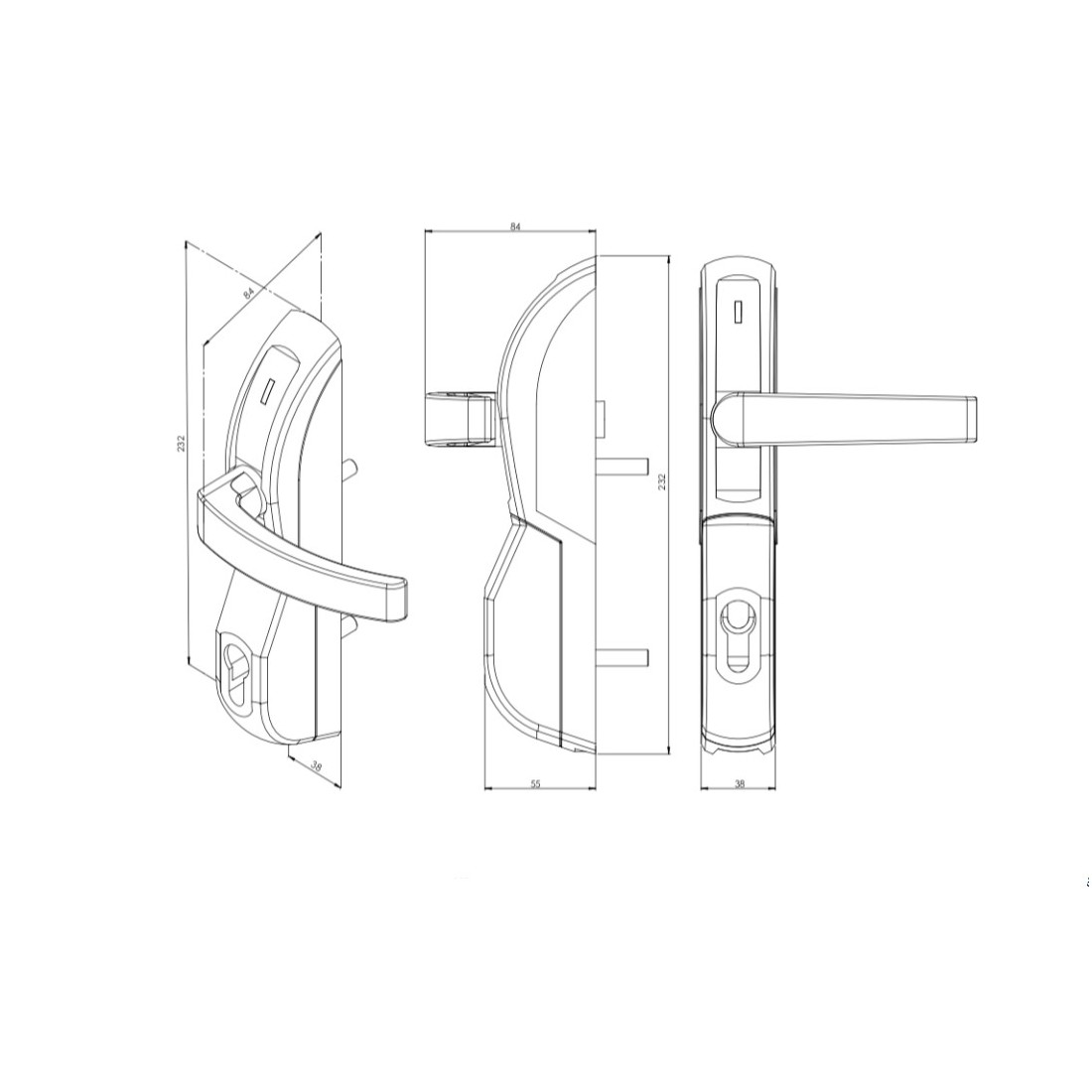 Elettromaniglia versione chiusa aperta corrente e con temporizzazione per maniglioni antipanico da applicare con scrocchi esterni.