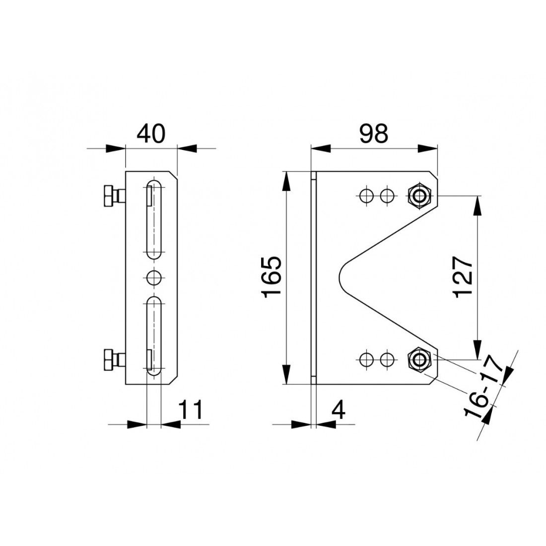 Staffa a distanza per protezione rottura molla industriale. Crea una distanza fra centri di 111, 127 o 152 mm.