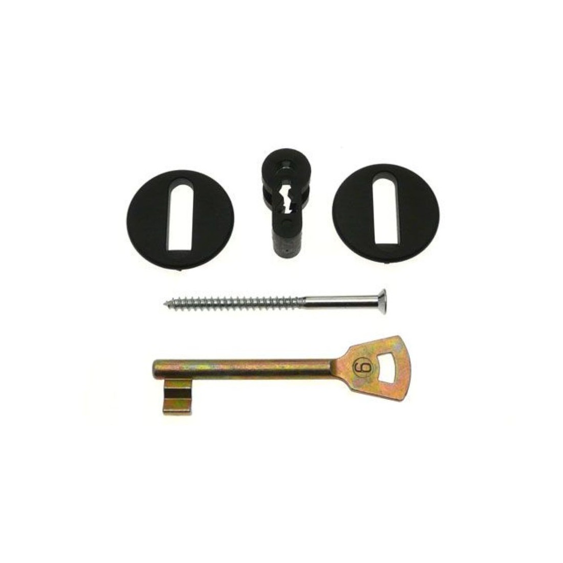 Kit inserto in PVC per serratura Patent compreso di inserto serratura, chiave tipo patent, vite per legno e coppia guida per chiave.