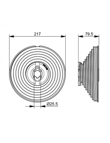 Dimensioni: Lunghezza=79,5 mm - Diametro interno= 25,5 mm - Diametro max. cavo= 5 mm - Diametro esterno= 217 mm - Altezza max.= 3300 mm