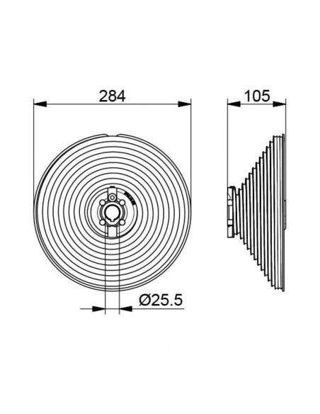 Tamburo cavo in alluminio con sistema normale. Dimensioni: Lunghezza= 105 mm - Diametro interno= 25,5 mm - Diametro max. cavo= 5 mm - Diametro esterno= 284 mm - Altezza max.= 6000 mm